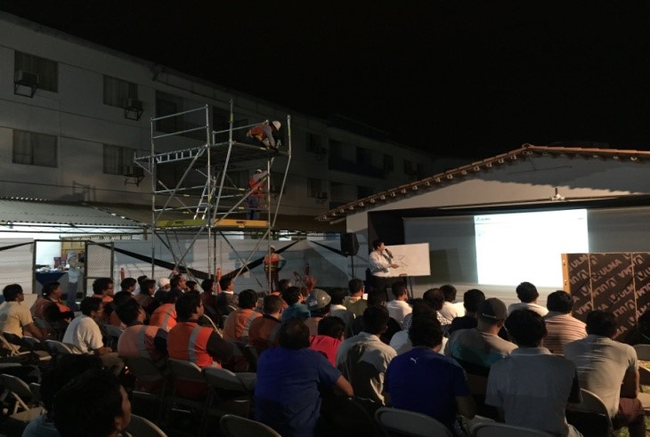 La charla se llevó a cabo los días 15 y 16 de abril para la empresa SSK y 17 de abril para el CONSORCIO JJC - COSAPI en total asistieron 144 personas entre ingeniero de seguridad, ingenieros de producción, ingenieros residentes, ingenieros técnicos y personal de obra, las cuales trabajan directa e indirectamente con los encofrados y andamios ULMA.