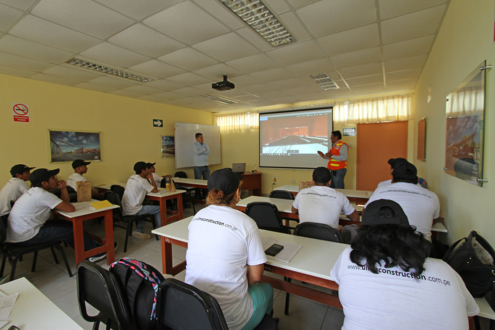 ULMA dispuso de 2 ingenieros y un supervisor para la charla que duró 2 semanas, desde el 11 hasta el 22 de septiembre. En este tiempo se dividieron las charlas en teóricas por las mañanas y prácticas por la tarde. Para la parte práctica, ULMA trasladó un equipo de andamio BRIO para que las personas pudieran realizar la identificación de piezas y armado de andamios a partir de planos diseñados por ULMA. Siempre bajo la supervisión y el apoyo de los ingenieros y supervisor. Esta experiencia del armado les ayudó a los participantes a ganar confianza y ver lo simple de armar un andamio.