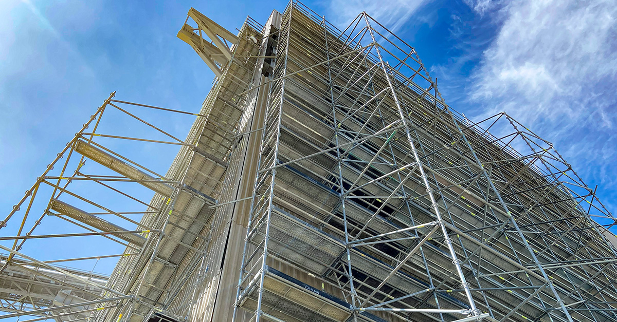 El desafío principal de este proyecto radicó en la necesidad de estabilizar los andamios en un espacio sumamente restringido. A diferencia de otros trabajos similares, en este caso no fue posible arriostrar las torres a la estructura existente, lo que obligó a buscar soluciones innovadoras y adaptadas a las condiciones del entorno. ULMA y su capacidad de ofrecer soluciones a medida, diseñó y proporcionó contrandamios optimizados, garantizando la estabilidad y seguridad de las torres de andamios durante todo el proceso de mantenimiento.